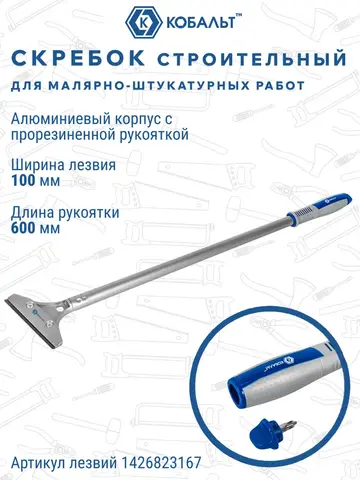 Профессиональный скребок КОБАЛЬТ — ваш надежный помощник при проведении строительных и отделочных работ! Уникальное сочетание алюминиевого корпуса, удобных двухкомпонентных ручек и широкого 100-миллиметрового лезвия обеспечивает комфортную работу и высокое качество очистки поверхностей. Удобная конструкция позволяет эффективно справляться даже с труднодоступными местами! Выбирайте проверенное качество вместе со строительным скребком КОБАЛЬТ!