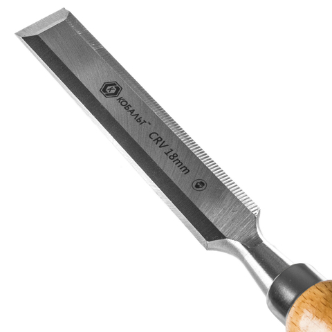 Стамеска плоская КОБАЛЬТ 18 х 140 мм, CR-V, деревянная рукоятка (1 шт.) блистер.