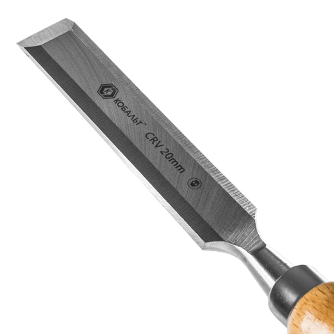 Стамеска плоская КОБАЛЬТ 20 х 140 мм, CR-V, деревянная рукоятка (1 шт.) блистер.