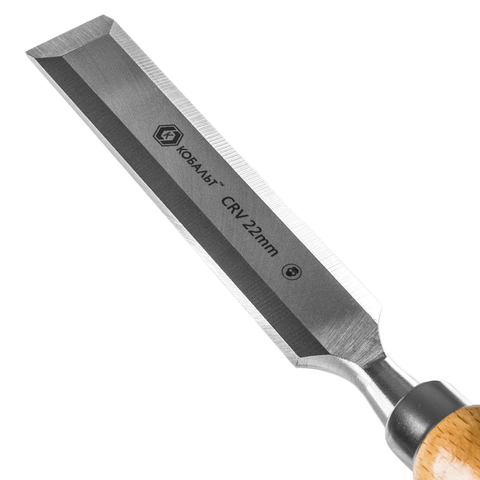 Стамеска плоская КОБАЛЬТ 22 х 140 мм, CR-V, деревянная рукоятка (1 шт.) блистер.