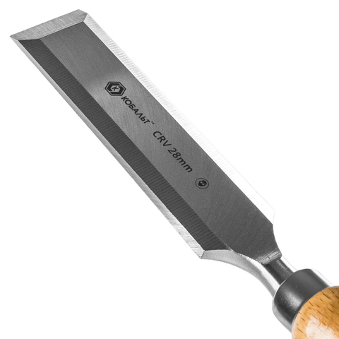 Стамеска плоская КОБАЛЬТ 28 х 140 мм, CR-V, деревянная рукоятка (1 шт.) блистер.