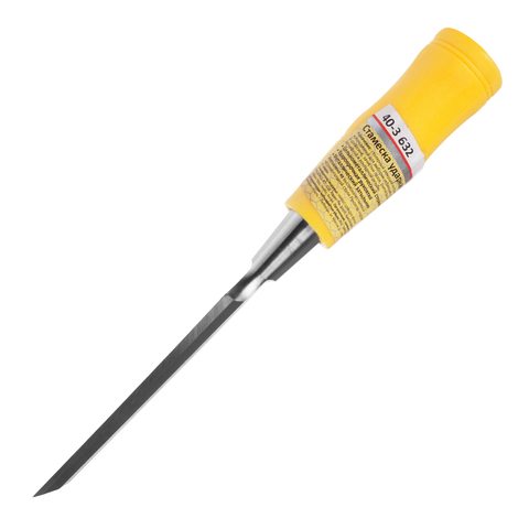 Стамеска ударная РемоКолор 40-3-632 приментяется для выборки небольших углублений в древисине, зачистки пазов, снятия фасок, рельефной и контурной резьбы. Врезание в материал происходит посредством нанесения легких ударов киянкой по торцу рукояти, которая имеет металлический затыльник. Инструмент изготовлен из инструментальной стали. Односторонняя заточка режущей кромки.