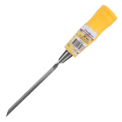 Стамеска ударная РемоКолор 40-3-638 приментяется для выборки небольших углублений в древисине, зачистки пазов, снятия фасок, рельефной и контурной резьбы. Врезание в материал происходит посредством нанесения легких ударов киянкой по торцу рукояти, которая имеет металлический затыльник. Инструмент изготовлен из инструментальной стали. Односторонняя заточка режущей кромки.
