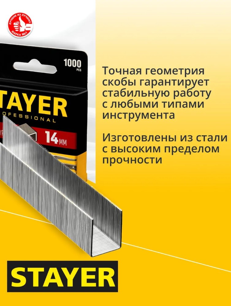 Представляем вашему вниманию качественные скобы STAYER шириной 14 мм (тип 53), идеально подходящие для вашего надежного степлера! В упаковке вы найдете 1000 штук – этого хватит надолго даже при интенсивном использовании! Сделано в Китае под строгим контролем качества бренда STAYER – признанного лидера среди расходных материалов для крепежа.