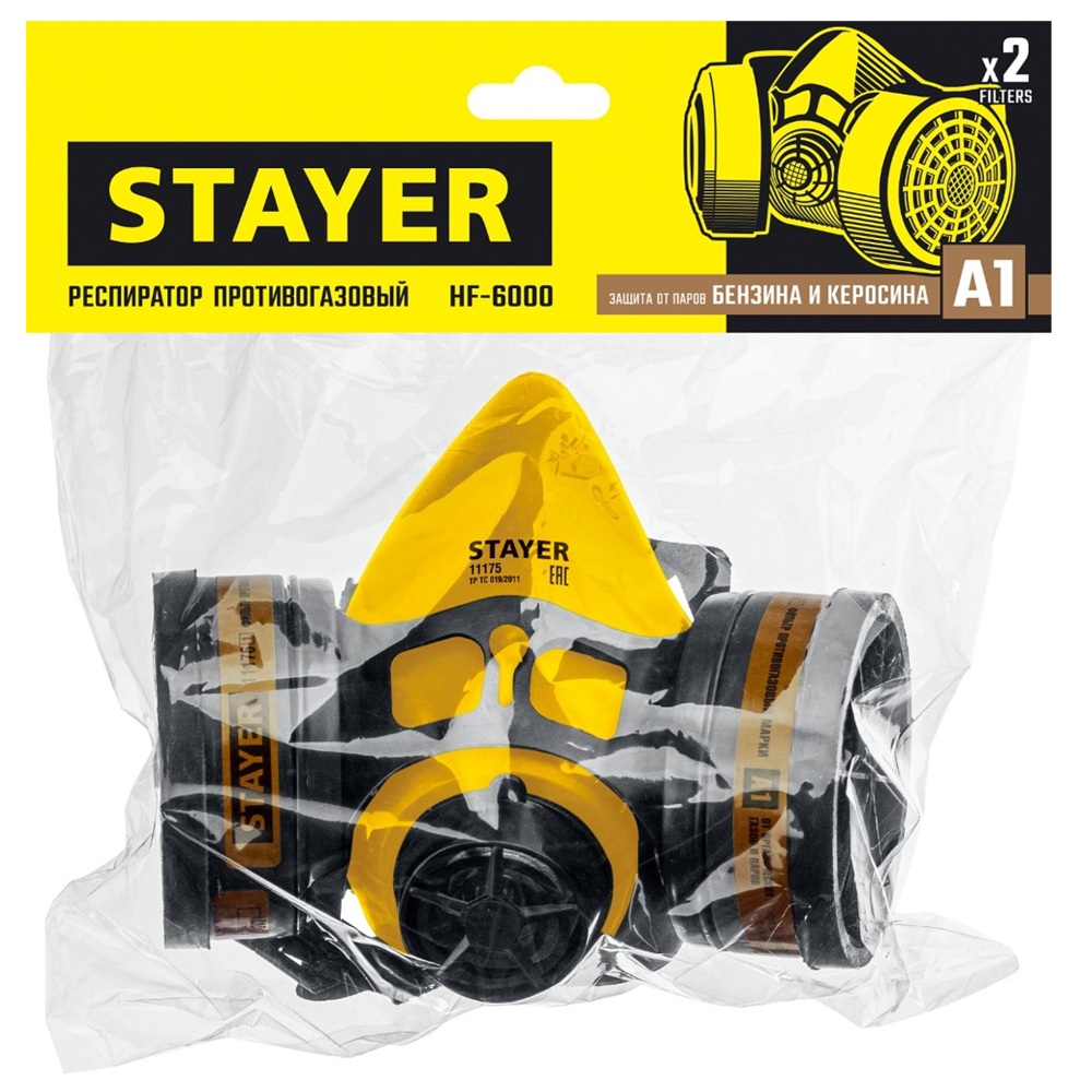 В комплекте с противогазовыми фильтрами марки ″А1″ служит для защиты от органических газов и паров с температурой кипения выше 65оС (бензин, керосин, ацетон) Применяется в сборе с фильтрами STAYER арт. 11176 (А1) и арт. 11177 (А1В1) Используется при объемной доле свободного кислорода в воздухе не менее 17% и суммарной концентрации вредных веществ, превышающей предельно допустимые концентрации (ПДК) не более чем в 15 раз. Работоспособен во всех климатических зонах РФ по ГОСТ 15150. Фильтр не может быть использован в следующих типах СИЗОД: пожарных, военных, медицинских, авиационных и для подводных работ.