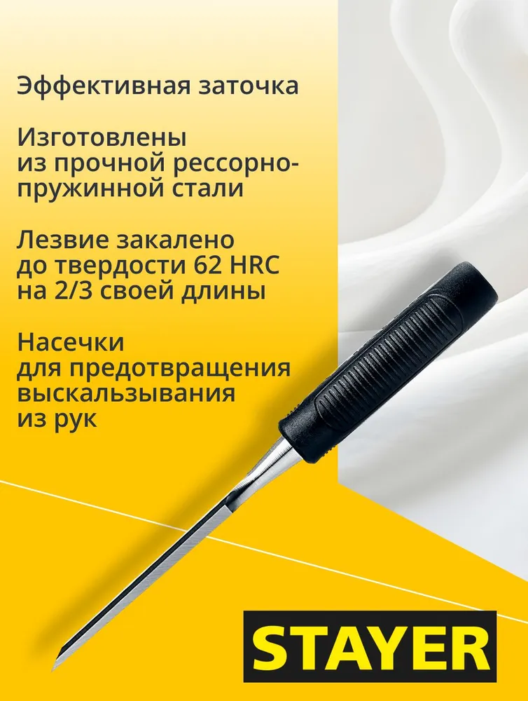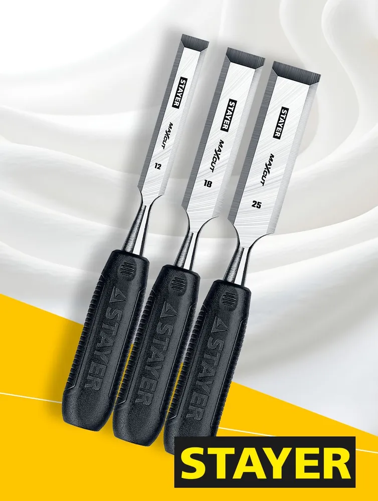 STAYER Max-Cut – идеальный помощник мастера! Настал момент подчеркнуть индивидуальность ваших изделий? С этим набором стамессок из прочной стали вы достигнете безупречного качества резьбы! Пластмассовые рукоятки обеспечивают комфортную работу и надежный хват. Не упустите возможность сделать каждый проект уникальным! Купить набор стамесок STAYER Max-Cut – значит открыть дверь к новым творческим возможностям!