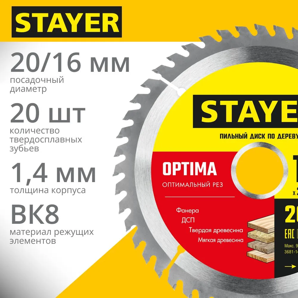 STAYER OPTIMA – это идеальный выбор профессионалов и любителей! Стальной твердость зубьев 63 HRC обеспечивает длительный срок службы диска, а оптимальное количество зубов (20Т) гарантирует ровный и точный распил без лишних усилий. Благодаря диаметру 140 мм и толщине 2,0/1,6 мм, этот инструмент легко справляется даже со сложными задачами. По-настоящему оптимальный рез по доступной цене! Создайте идеальное изделие вместе с STAYER OPTIMA – вашим надежным помощником в работе с древесиной!