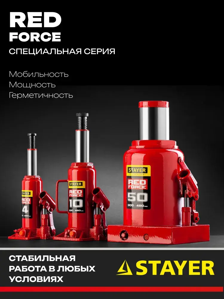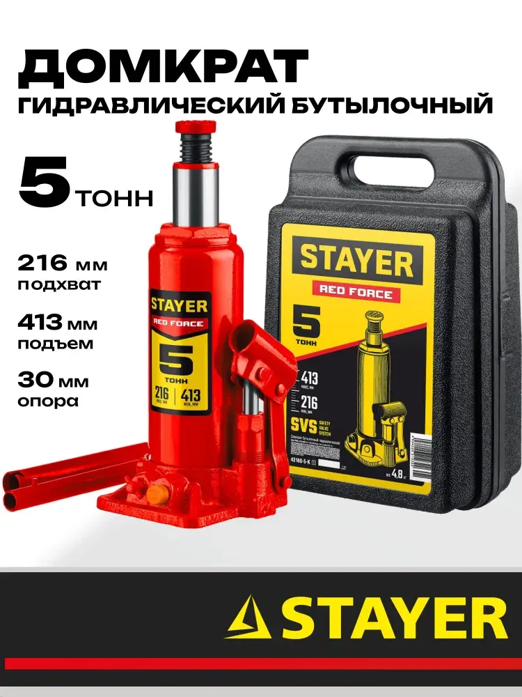 STAYER 5 т, 216-413 мм, домкрат гидравлический бутылочный RedForce 43160-5-K_z01, кейс.