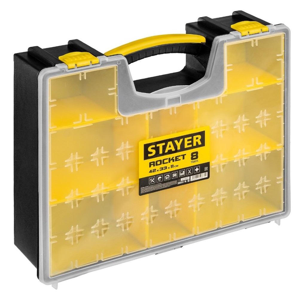 Удобство организации пространства – залог комфорта! STAYER ROCKET-8 поможет вам легко упорядочить вещи дома либо в гараже. Пластиковые съёмные лотки облегчают сортировку предметов по категориям, а компактные размеры идеально подойдут даже для небольших помещений. Прочный материал обеспечивает долговечность использования. Храните всё необходимое под рукой и всегда знайте место каждой вещицы!