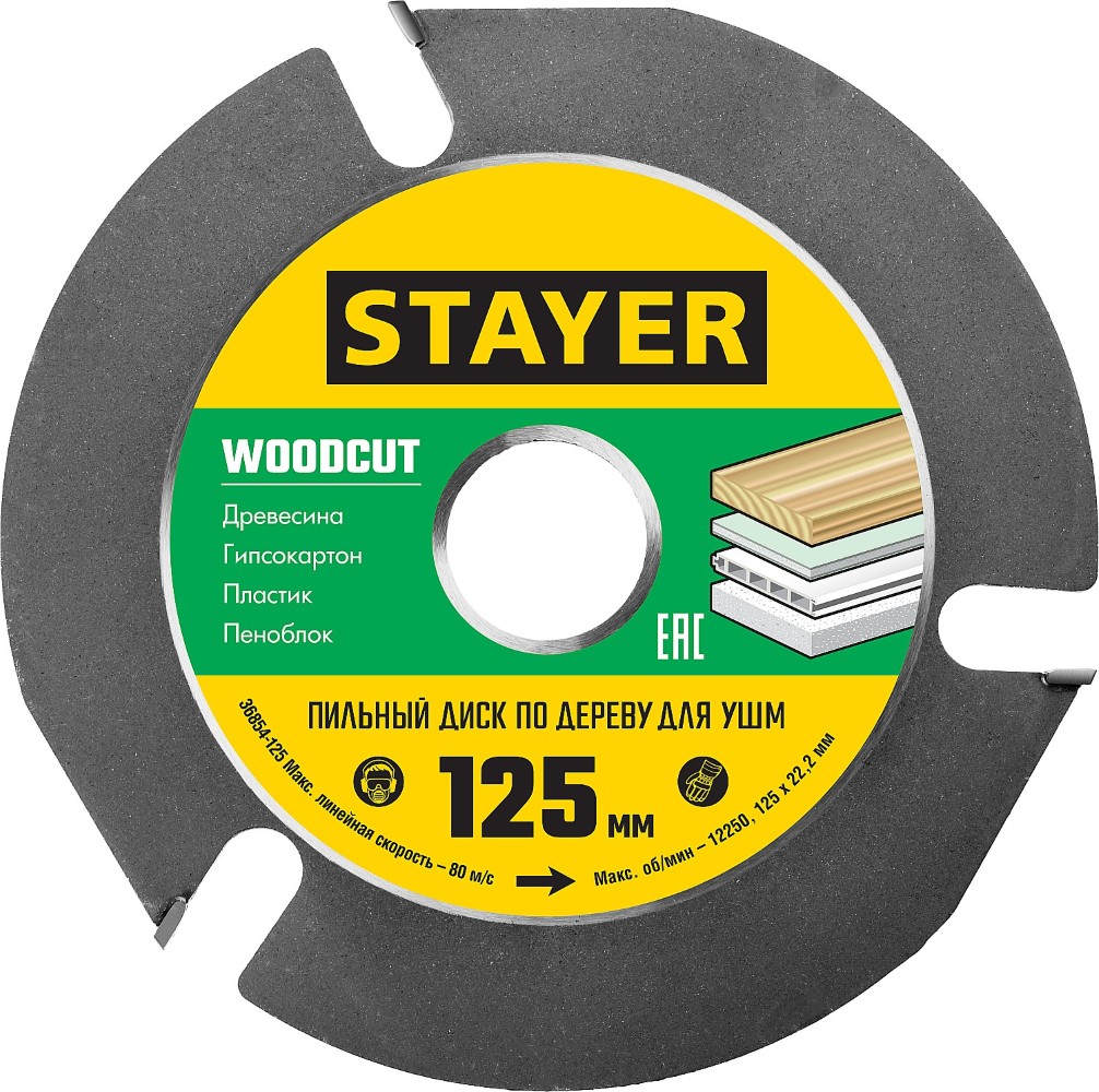 STAYER WOODCUT, 125 х 22.2 мм, 3 резца, для УШМ, пильный диск по дереву (36854-125)