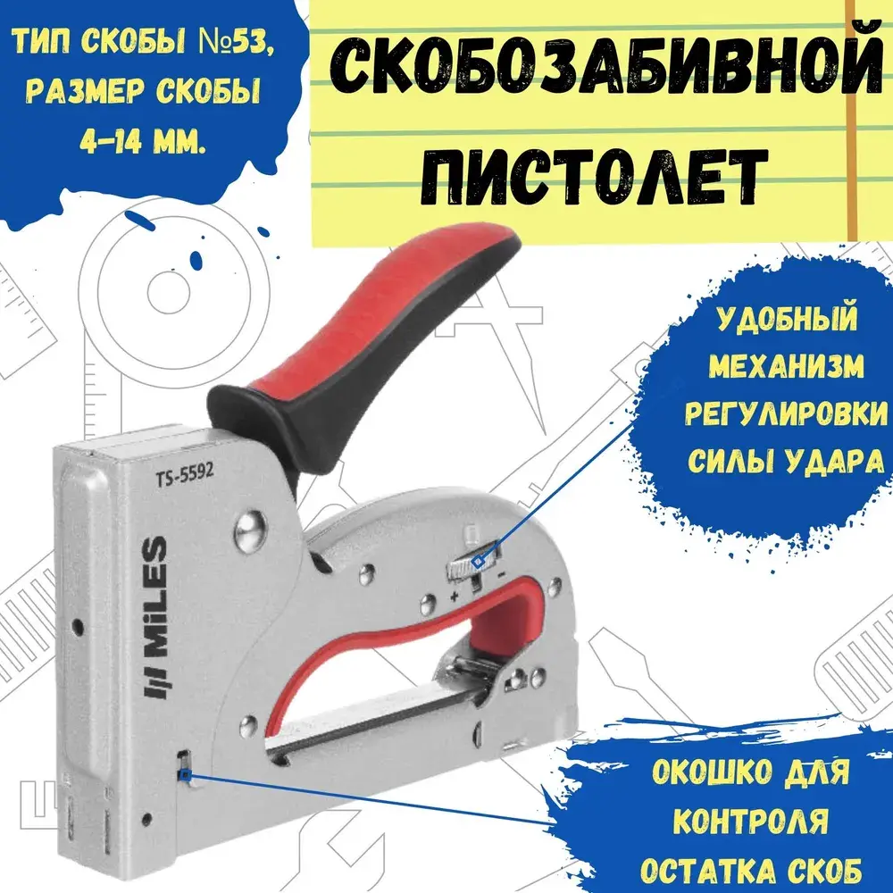 Профессиональный степлер MILES со скобой типа №53 выполнен из металла, обеспечивая надежность и долговечность эксплуатации. Габариты модели (160x31x134 мм) позволяют удобно размещать инструмент в рабочем пространстве или инструментарии. Идеально подходит для выполнения ремонтных и строительных работ, а также решения повседневных задач дома или на даче.