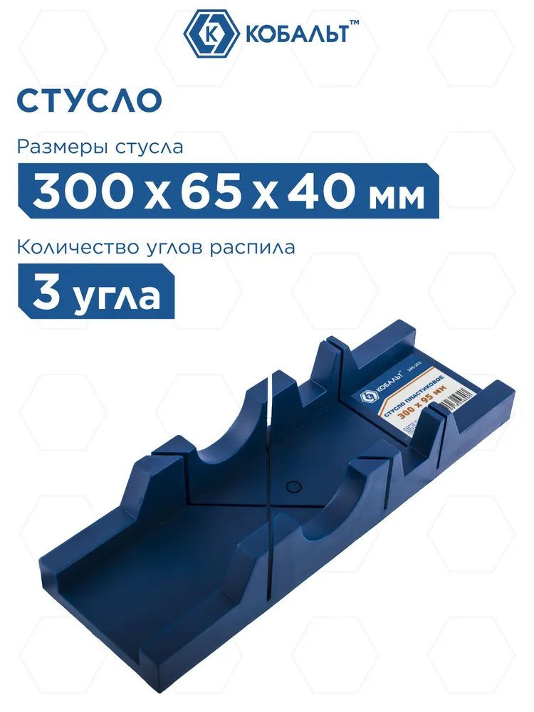 Пластиковое стусло Кобальт – идеальный инструмент для чистых и точных резов! Размеры изделия 300x95x50 мм позволяют легко хранить его даже в небольшой мастерской. Удобно, надежно и просто – выбирайте качество вместе со стуслом Cobalt!