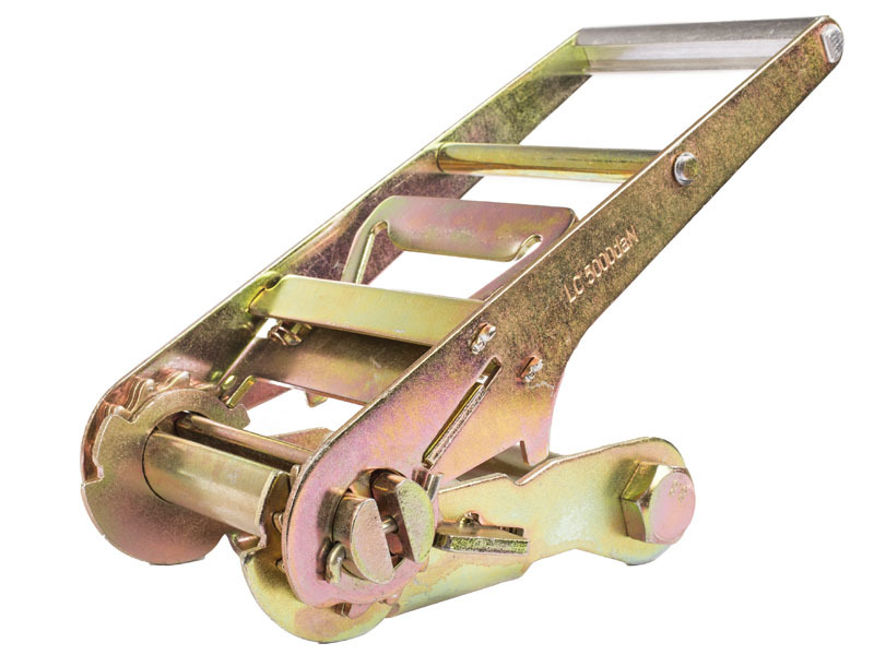 Стяжной механизм представляет собой небольшое устройство, изготовленное из углеродистой стали, в основе которой встроен барабан с прорезью для заправки текстильного стяжного ремня и рукоять. В работе стяжной механизм крайне прост: задействуйте только ручку, раскачивая ее по амплитуде, в следствии чего будет натягиваться ремень.