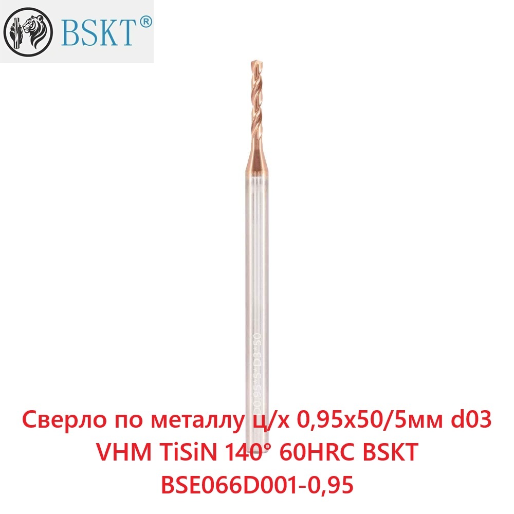 Сверло по металлу ц/х 0,95x50/5мм d03 VHM TiSiN 140° 60HRC BSKT BSE066D001-0,95