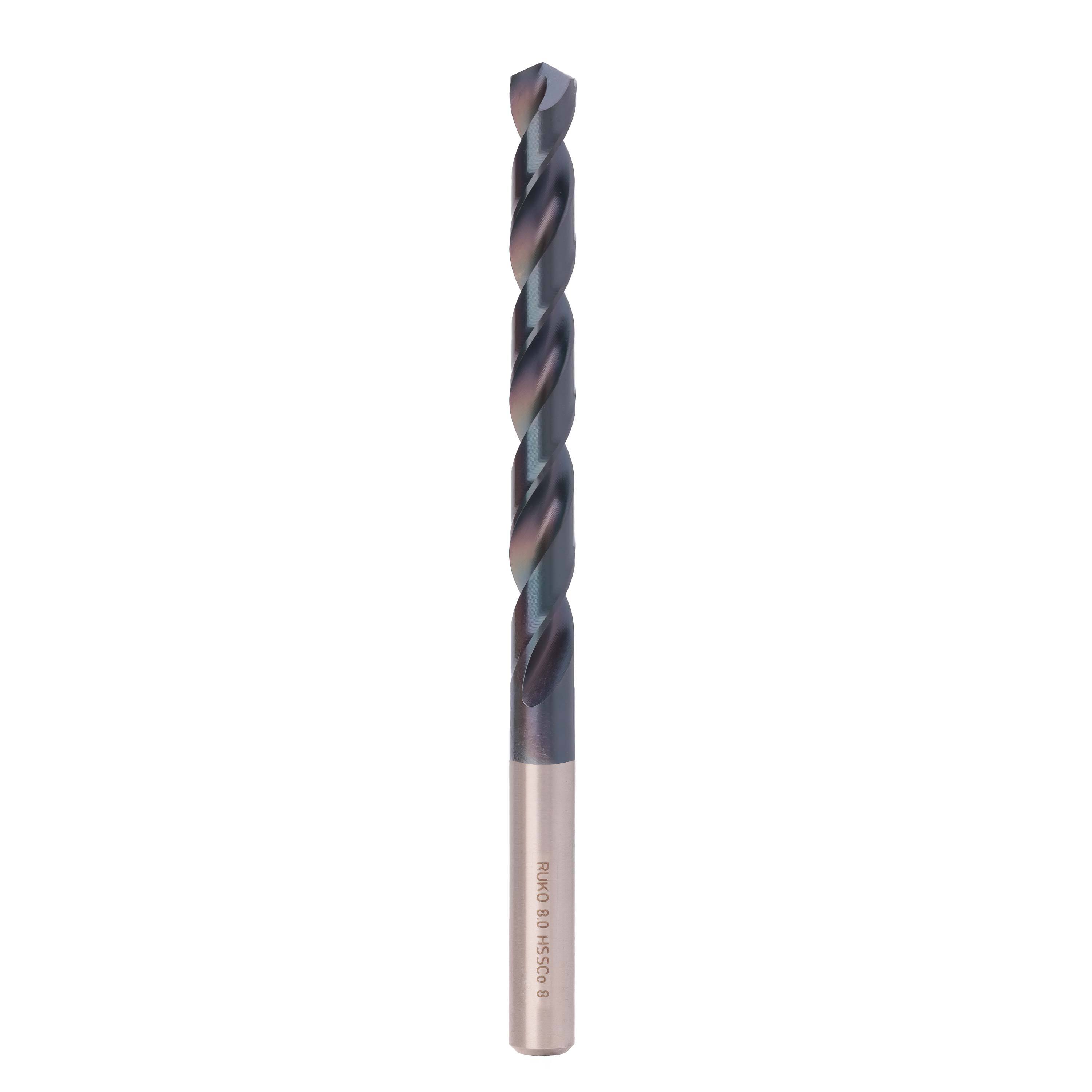 Сверло по металлу ц/х 8,0x117/75мм DIN338 h8 5xD HSSE-Co8 TiALN 130° Ruko 281080EF.