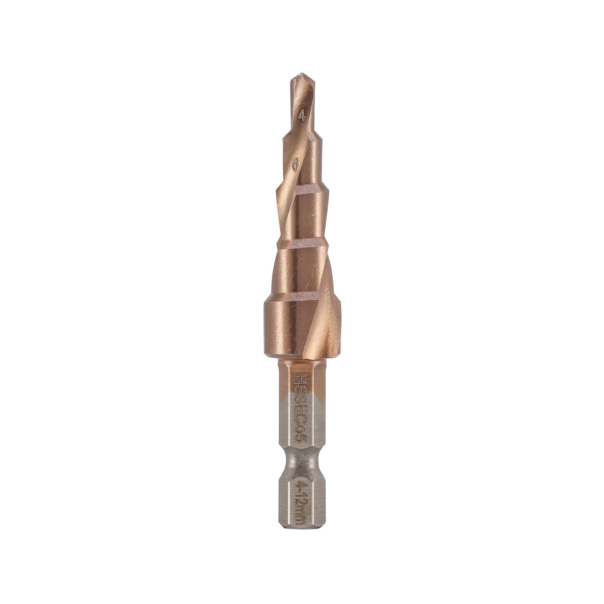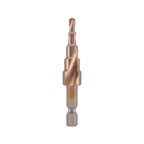 Сверло ступенчатое 4-12мм (Спиральное) HSSE-Co5 9ступ. L65мм хв. 6-гр 1/4" H-Tools 101050-9EHT.