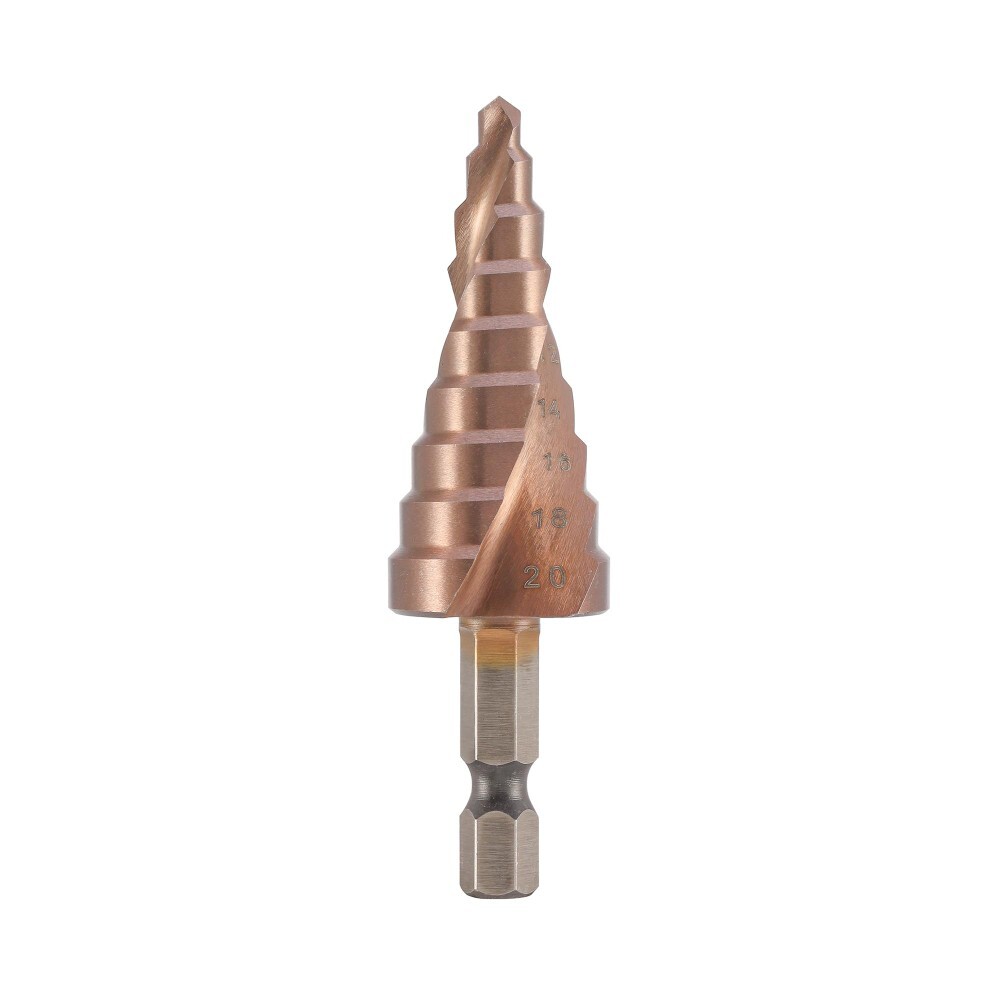 Сверло ступенчатое 4-20мм (Спиральное) HSSE-Co5 9ступ. L75мм хв. 6-гр 1/4" H-Tools 101051EHT
