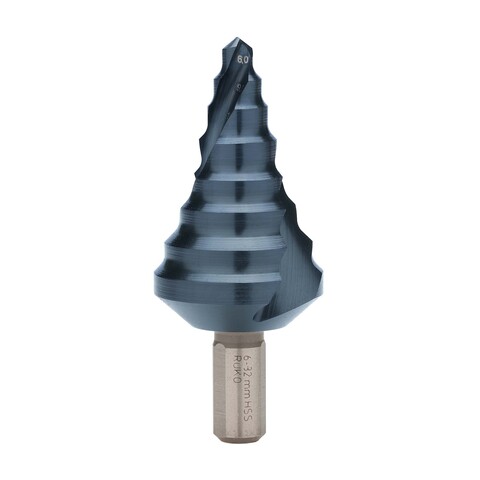 Сверло ступенчатое 6-32мм (Спиральное) HSS-G TiALN 8ступ. L75мм хв.10мм Ruko 101057F