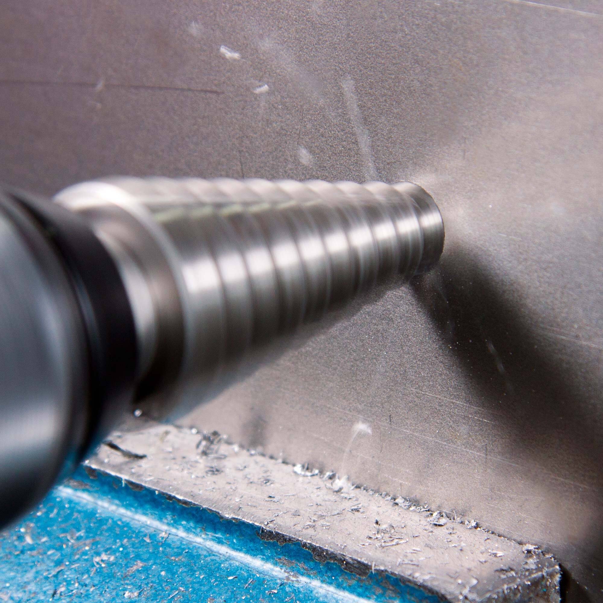 Специальная CBN - заточка сверла и подточка вершины выполнены согласно DIN 1412 C, что позволяет выполнять центровку и сверление тонкого листового материала.