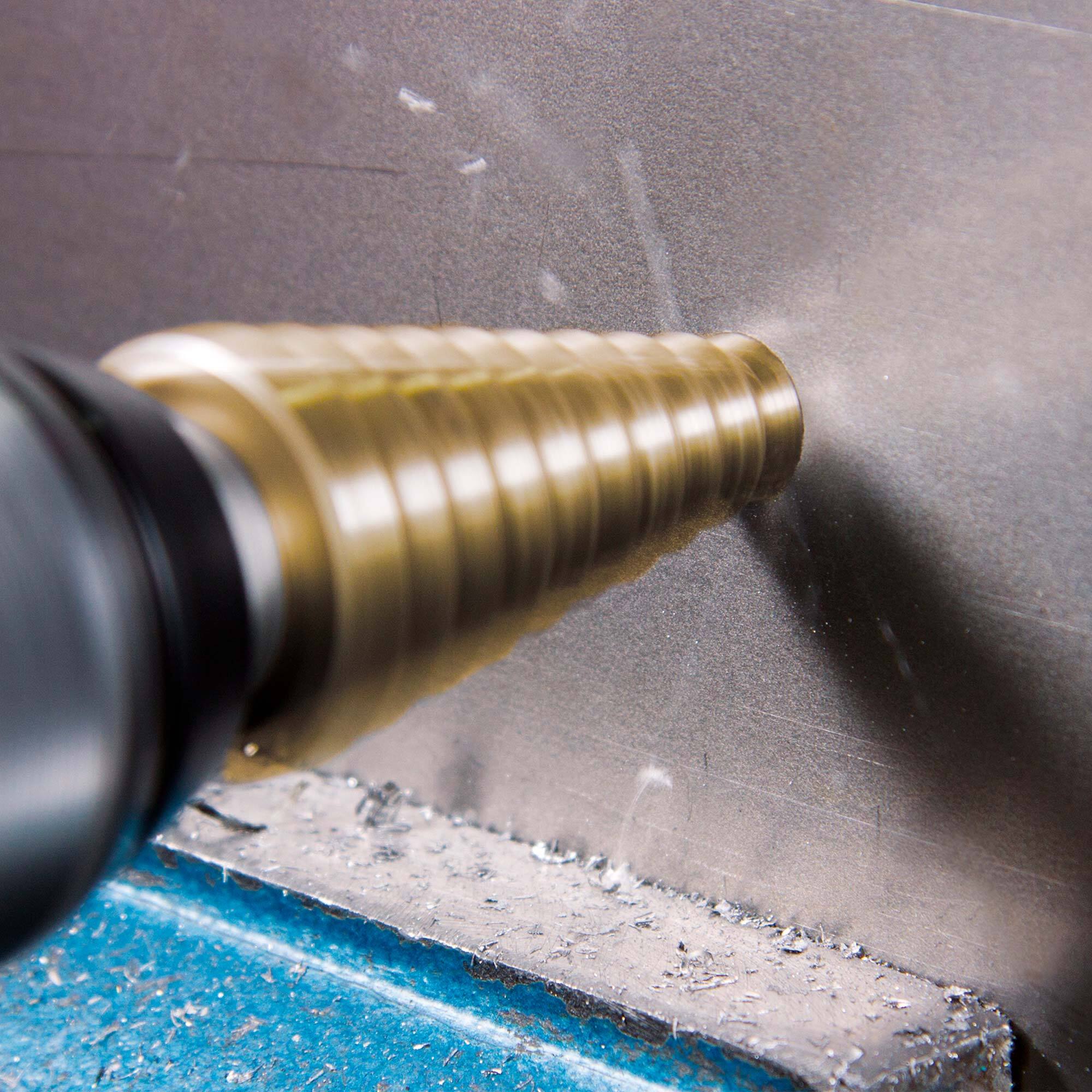 Специальная CBN - заточка сверла и подточка вершины выполнены согласно DIN 1412 C, что позволяет выполнять центровку и сверление тонкого листового материала.