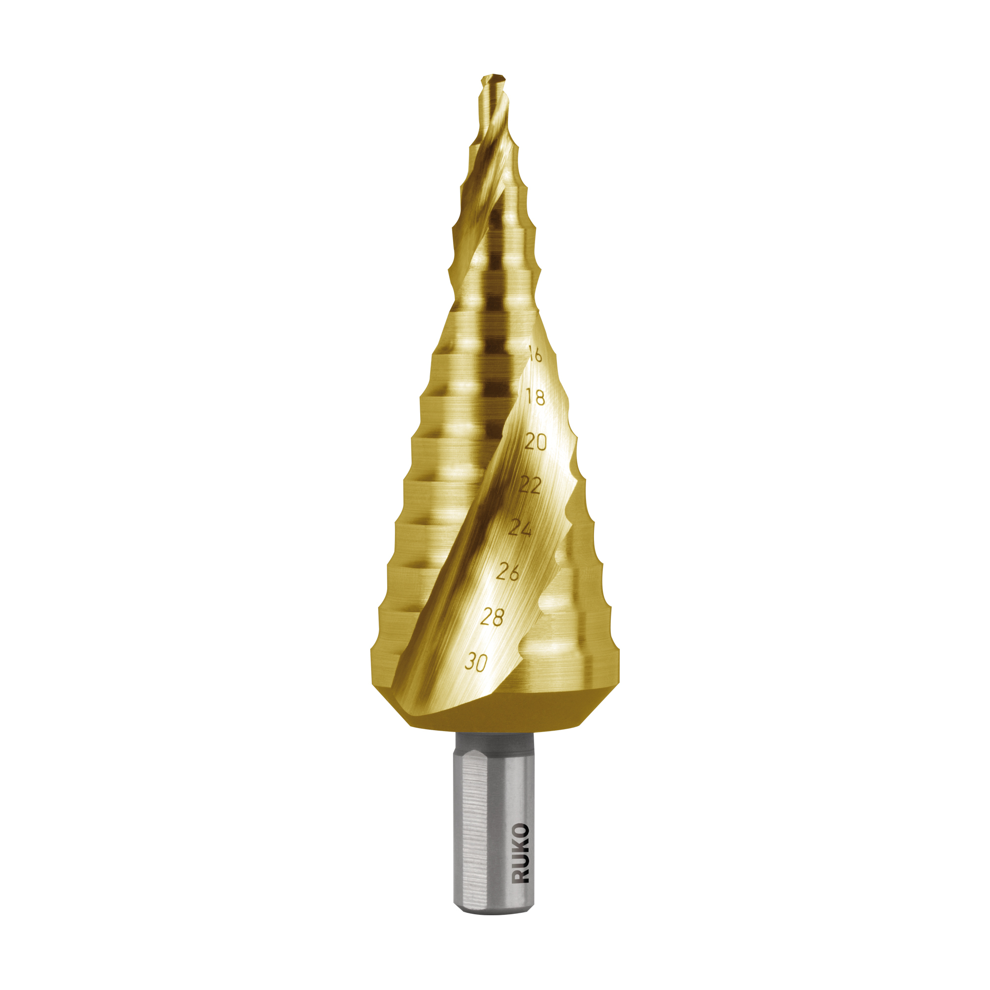 Сверло ступенчатое 4-30мм (Спиральное) HSS-G TiN 14ступ. L100мм хв. 10мм Ruko 101052T