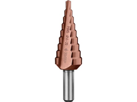 ЗУБР Кобальт, 4-20 мм, 9 ступеней, сталь Р6М5, кобальтовое покрытие, ступенчатое сверло, Профессионал (29672-4-20-9)