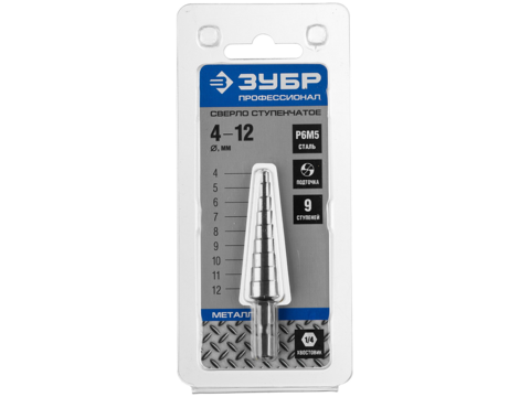 ЗУБР 4-12 мм, 9 ступеней, сталь Р6М5, ступенчатое сверло, Профессионал (29670-4-12-9)