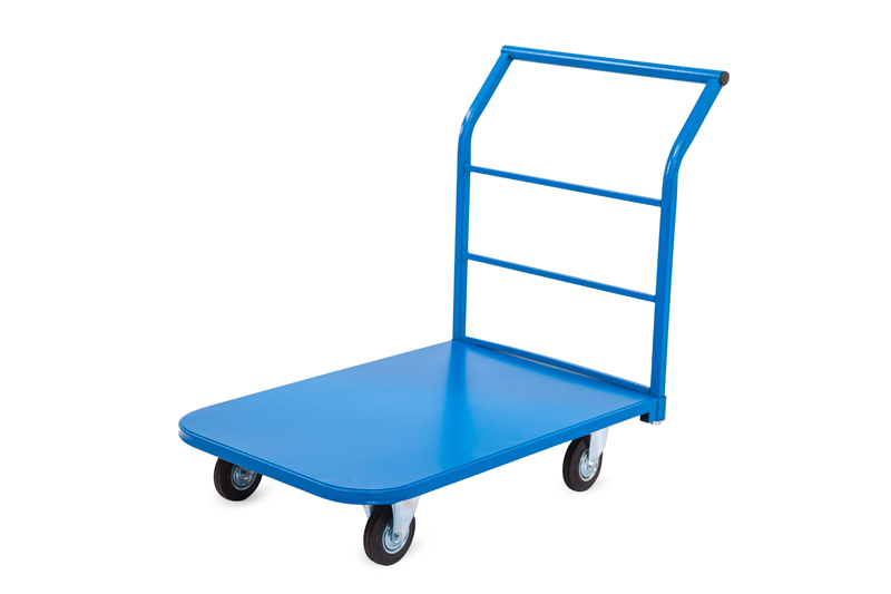 Четырехколесные платформенные тележки с обычной или складной рукоятью востребованы в условиях склада, магазина. Позволяют перевозить грузы небольшого веса. Платформа изготавливается из надежного металлопроката, выдерживает распределенную и точечную нагрузку. Также в конструкцию входят: ручка управления, 4 колеса, металлическая рама.