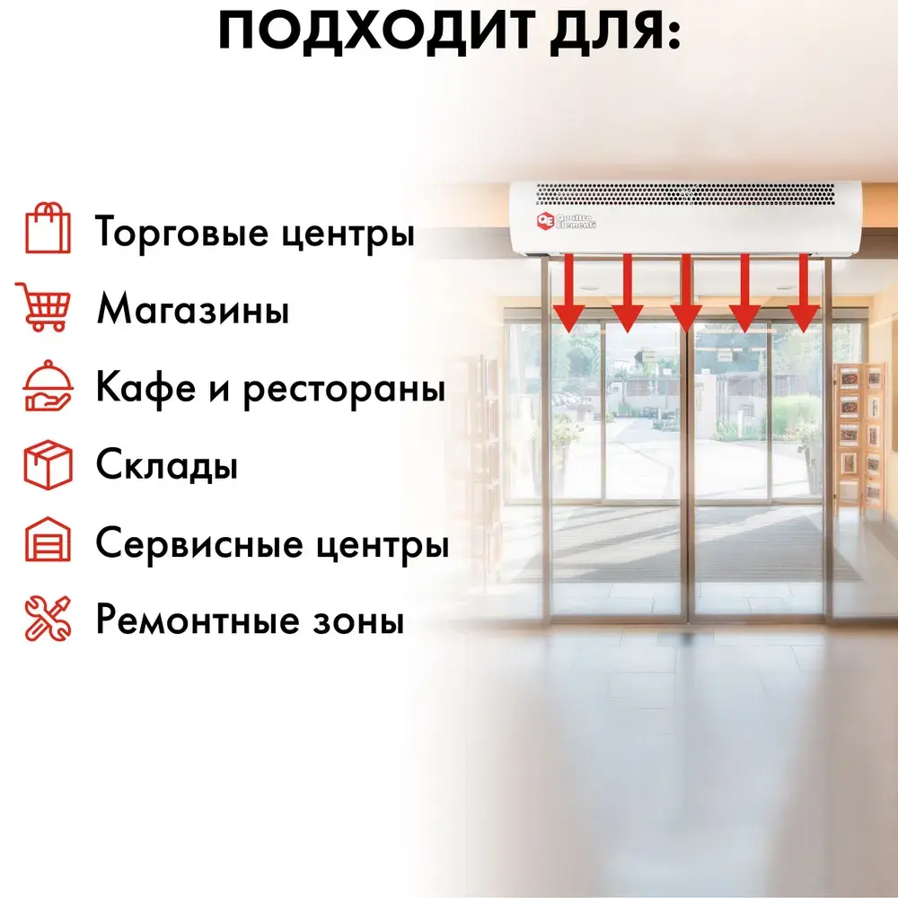 Эффективная защита от холода и сквозняков! Электрическая тепловентиляционная завеса QUATTRO ELEMENTI QE-5000TVZ мощностью до 5,0 кВт создаст надежный тепловой барьер, поддерживая комфортную температуру в помещении. Высокий объем воздушного потока — до 400 куб.м/ч обеспечивает быстрое прогревание воздуха. Идеальное решение для дома, дачи или небольшого офиса. Защитите свой дом с пользой и уютом уже сегодня!