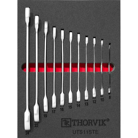 Набор комбинированных ключей применяется при слесарных работах, при которых необходим монтаж/демонтаж крепежных соединений с рабочим 6-ти или 12-ти гранным профилем. Зевы комбинированных ключей имеют одинаковые размеры. Ключи выполнены из высококачественной стали, благодаря чему отличаются надежностью и долговечностью. Стойкое гальваническое покрытие исключает образование коррозии, продлевая срок службы инструмента.