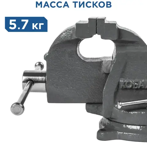 Тиски слесарные поворотные КОБАЛЬТ стальные, ширина губок 75 мм, захват 75 мм, 5.5 кг, наковальня, коробка (248-955) - предназначены для надежной фиксации деталей для дальнейшей сборки или обработки режущим, шлифовальным или легким ударным инструментом.