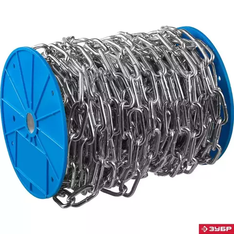 Цепь такелажная длиннозвенная DIN 763 ЗУБР 4-304030-03, предназначена для использования в бытовых нуждах и при проведении строительных работ в качестве подвесок, растяжек. Обладает отличной гибкостью, благодаря чему они находят широкое применение в строительстве и быту. Под воздействием большой нагрузки происходит незначительное удлинение цепи. Длиннозвенные цепи имеют меньший вес по сравнению с короткозвенными. Не используется в грузоподъемных механизмах, для перемещения грузов и при такелажных работах. Цинковое покрытие обеспечивает устойчивость цепей к неблагоприятному воздействию окружающей среды.