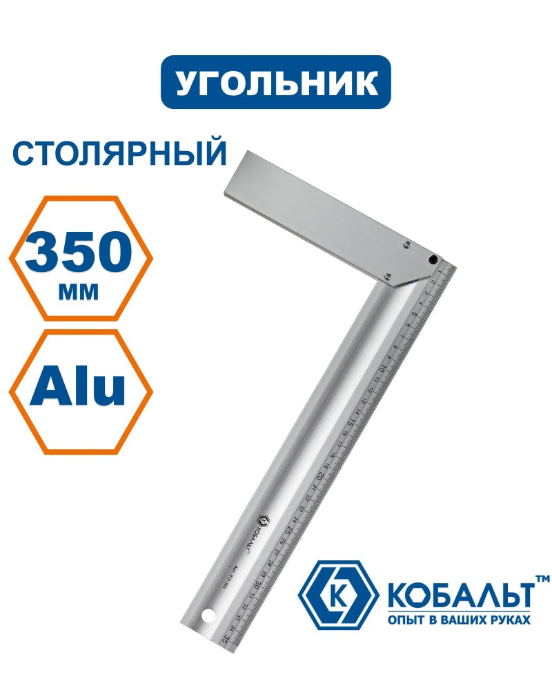 Столярный угольник 400 мм от бренда КОБАЛЬТ (артикул 243-622) выполнен из нержавеющей стали с алюминиевым основанием, что обеспечивает его долговечность и устойчивость к коррозии. Прочная конструкция инструмента гарантирует точность измерений при выполнении строительных, столярных и слесарных задач. Подходит для разметки материалов, проверки углов и выполнения точных замеров.