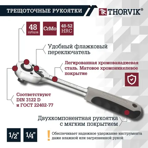 Универсальный набор инструмента 77 предметов Thorvik UTS0077/12 52803 включает в себя большое количество оснастки и подойдет для работы с автомобилями в сервисах, а также различных манипуляций с крепежом.