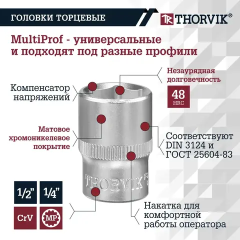 Преимущество набора - использование 12-гранных головок, которые допускают работу с 4, 6, 8 и 12-гранным крепежом. Инструмент полностью безопасен для граней головок болтов и гаек.