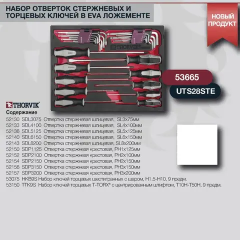 Thorvik UTS28STE Набор отверток и торцевых ключей в EVA ложементе 280х375 мм, 28 предметов 53665