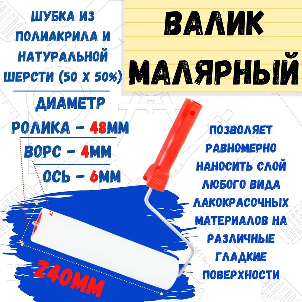 Валик РемоКолор 04-2-306 для малярных работ позволяет равномерно наносить слой любого вида лакокрасочных материалов на различные гладкие поверхности. Шубка из полиакрила и натуральной шерсти (50 x 50%) впитывает много краски, но не оставляет потеков и недокрашенных полос по краям. Валик довольно устойчив к агрессивным растворителям и истиранию, шубка наклеена на пластиковый корпус, поэтому при правильном использовании с его помощью можно окрашивать значительные поверхности.