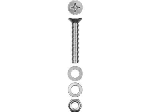 • Набор состоит из болтов с шестигранной головкой DIN 965, гаек шестигранных DIN 934, гроверных шайб DIN 127 и плоских шайб DIN 125