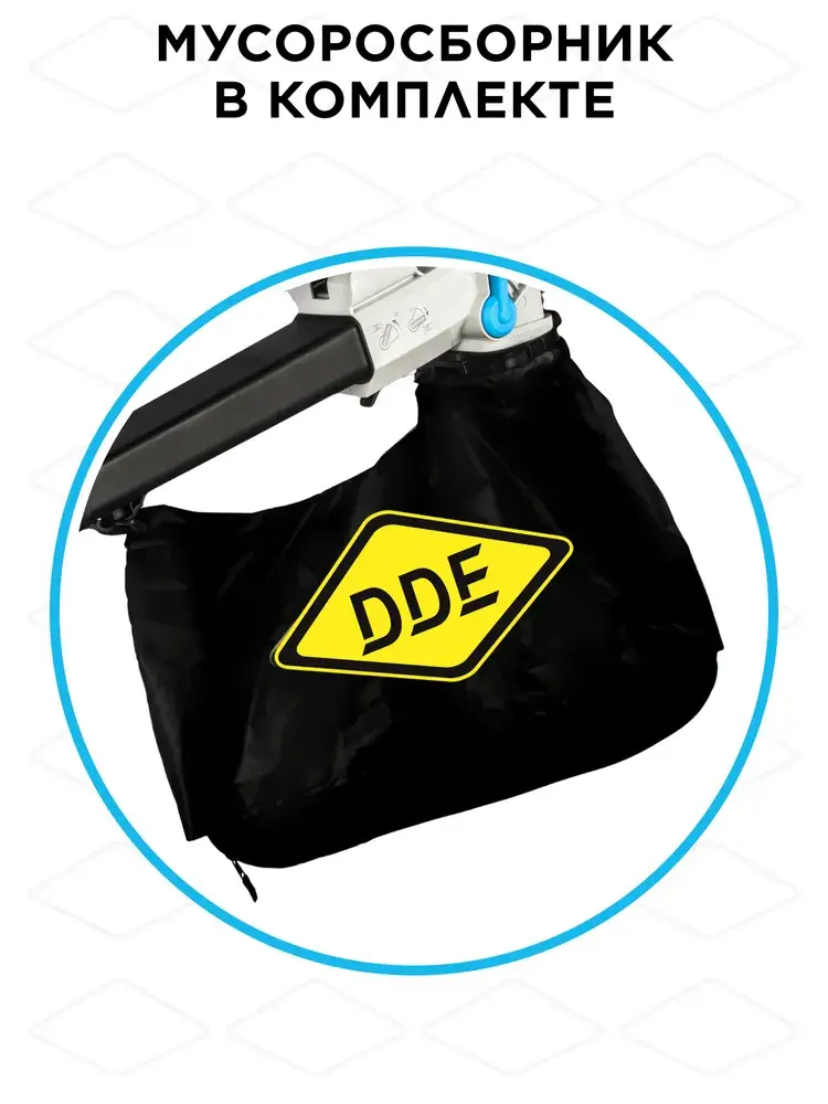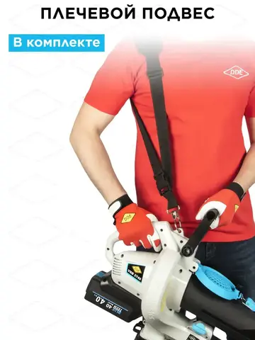 Воздуходув аккумуляторный DDE BlueTech VBB 2740 (590 м3/ч, 52 м/с, измельчитель, сборник, акб 4 Ач + ЗУ 5А) (925-044)