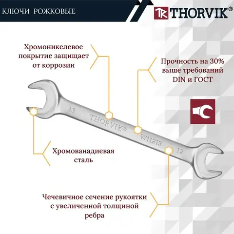 Thorvik W1S10TB Набор ключей гаечных рожковых серии ARC в сумке, 6-24 мм, 10 предметов 52614.
