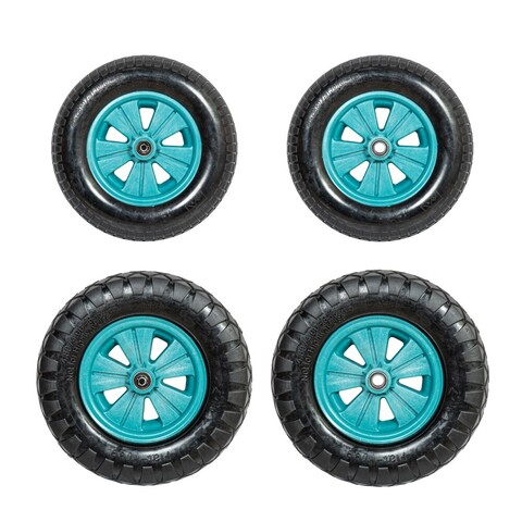 Конструкция колеса со встроенной камерой сохранила амортизационные свойства и устойчивость на неровных поверхностях, как у пневматического колеса, а уникальный состав смеси на основе пенополиуретана наделил шину износостойкостью, невосприимчивостью к температурным колебания и воздействию агрессивных строительных смесей и выносливостью к повышенным нагрузкам до 250 кг.
