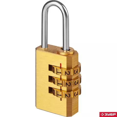 ЗУБР 3 диска, замок навесной мини, латунный корпус, кодовый 37118-1_z02 Профессионал.