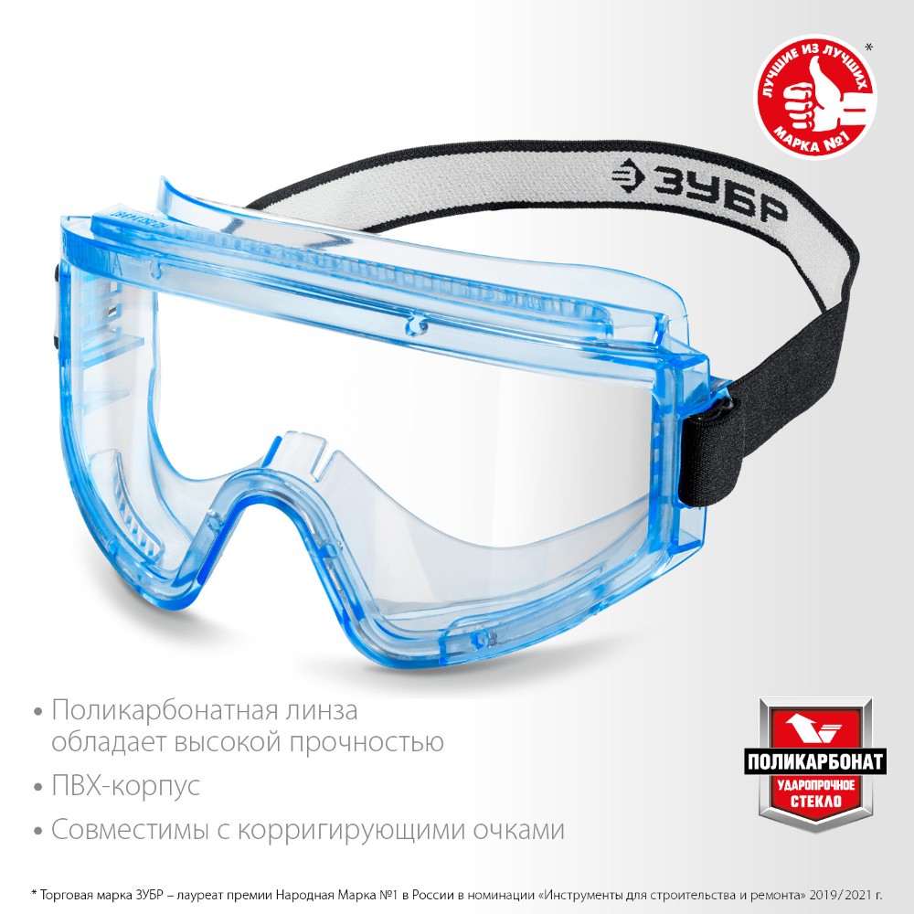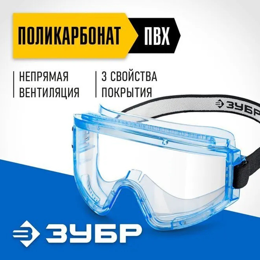 ЗУБР ПАНОРАМА Н, закрытого типа, стекло из ударопрочного поликарбоната, защитные очки с непрямой вентиляцией, Профессионал (110237)