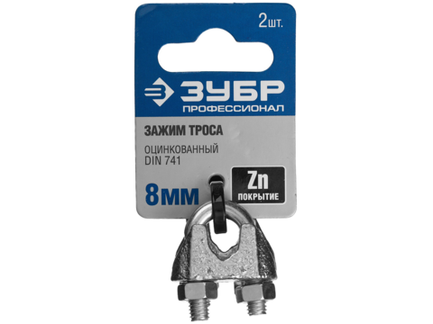 Зажим троса DIN 741, 8мм, 2 шт, оцинкованный, ЗУБР Профессионал