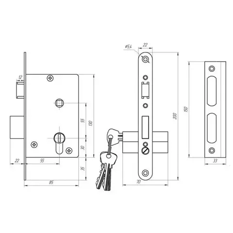 70-1-004 Замок врезной ЗВ4-3.01 (хром) 55/55мм, 4 ключа,цилиндр. мех-м 70мм, 200х85мм (ЗЕНИТ)