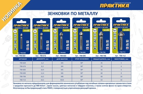 Зенковка по металлу ПРАКТИКА 6,3 х 45 мм, 90 град., под резьбу М3