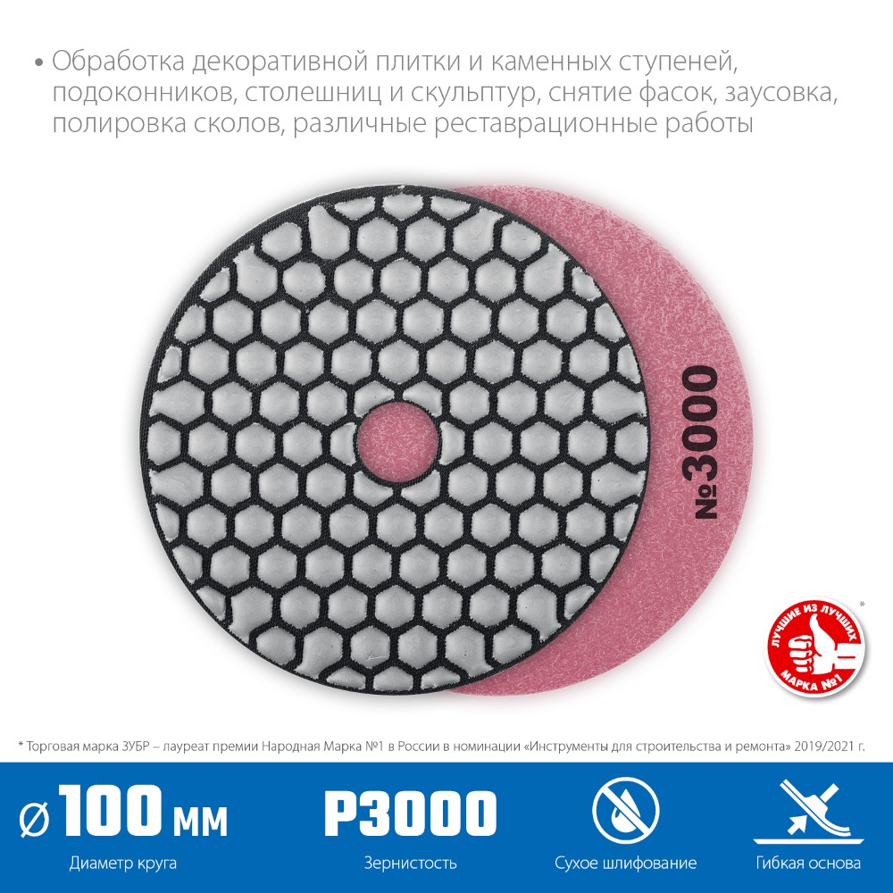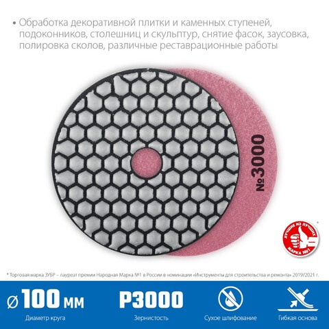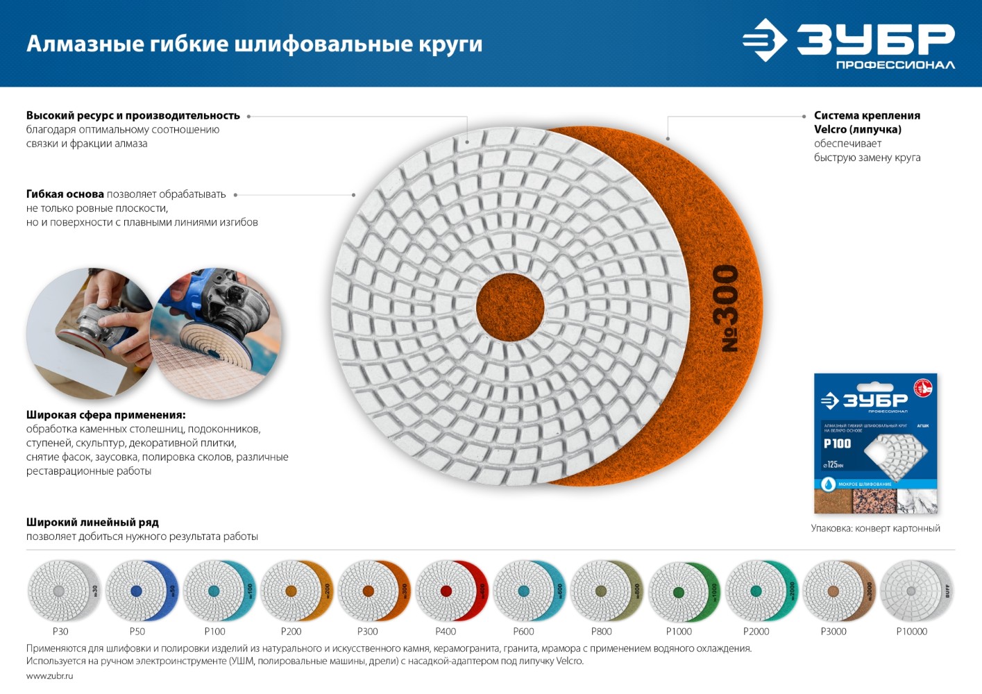 Алмазный гибкий шлифовальный круг ЗУБР №3000 идеально подходит для профессионального сухого шлифования бетона. Высокоточная обработка поверхностей обеспечивается зернистостью 100 мкм и диаметром круга 228 мм. Экономьте время и силы благодаря эффективной работе инструмента от известного бренда «ЗУБР». Получайте безупречный результат даже при сложных работах!