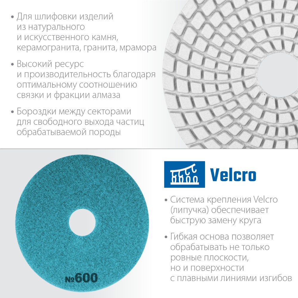 Алмазный гибкий шлифовальный круг ЗУБР 125 мм, №600 создан специально для профессионалов! Мокрая технология обеспечивает точное шлифование бетона без пыли, продлевая срок службы инструмента. Высокое качество бренда «ЗУБР» гарантирует надежность каждого оборота — ваш идеальный помощник в работе над сложными поверхностями!