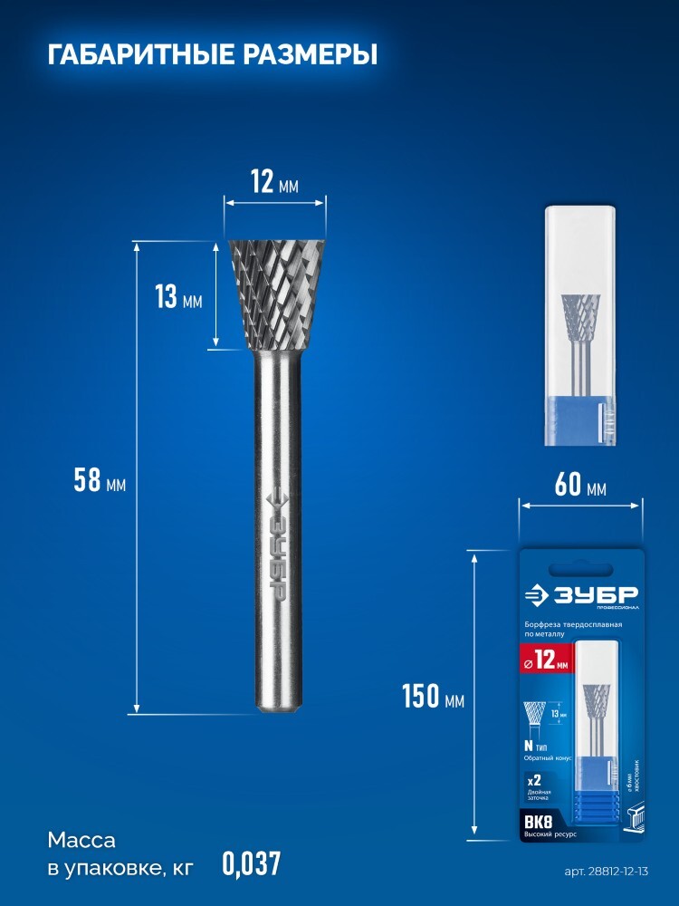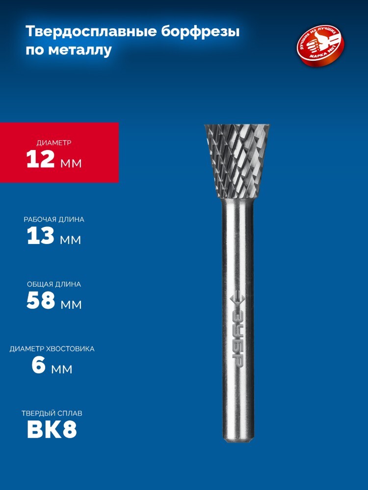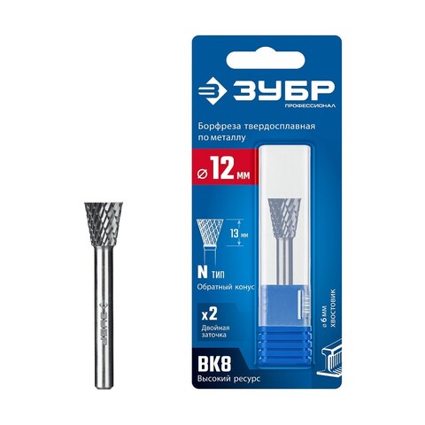 Твердосплавная борфреза ЗУБРПрофессионалобеспечивает высокую точность обработки металлических поверхностей благодаря обратному конусу под углом 30°, диаметрам 12x13 мм и надежному шестимиллиметровому хвостовику. Долговечность инструмента способствует снижению затрат на расходники, повышая эффективность вашего рабочего процесса. ПодходитПрофессионалм, требующим безупречного качества выполнения работ по металлообработке.