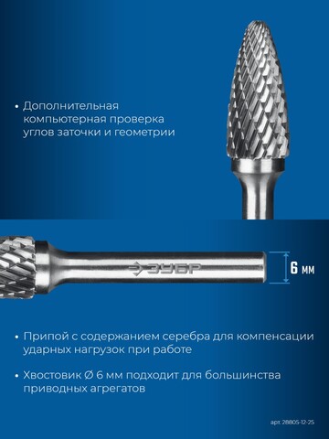 Профессиональная борфреза ЗУБР типа F идеально подходит для точной обработки металлических поверхностей! Парболическая форма с радиусом 3,0 мм обеспечивает высокое качество реза и аккуратность обработанной поверхности. Твердосплавное исполнение продлевает срок службы инструмента и сохраняет его эффективность даже при интенсивных нагрузках. Подходит для использования со стандартными станками с хвостовиком 6 мм. Улучшите результат своих работ – выберите проверенное решение от надежного бренда ЗУБР!